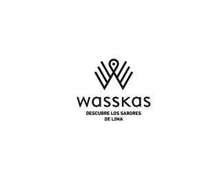 WASSKAS城市在線指南標志,使用字母“W”作為創(chuàng)意原型,融入地圖位置元素,瓦斯卡斯是秘魯利馬市的在線指南。
