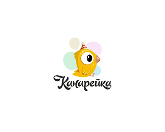 CANARY兒童宴會廳標(biāo)志,使用可愛的一只戴著禮帽的小鳥的卡通形象作為識別元素。