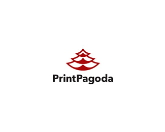 PRINTPAGODA在線打印服務(wù)標志,使用紙張的剪影構(gòu)筑的立體空間是該標志的創(chuàng)意,紅色是主識別色。