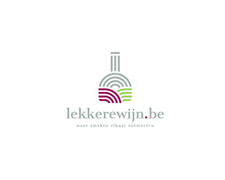LEKKEREWIJN葡萄酒標(biāo)志設(shè)計(jì),銷售比利時/荷蘭的味道濃郁的葡萄酒。標(biāo)志象征著一瓶酒瓶,日落和兩排葡萄酒,兩種顏色的運(yùn)用可以標(biāo)識葡萄酒行業(yè)的特征。
