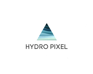 HYDROPIXEL繪圖公司標(biāo)志設(shè)計(jì),專門用于海床3D繪圖軟件,以三角形和波浪作為識別元素。