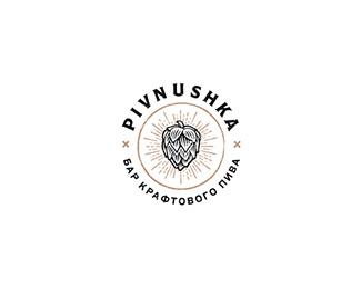 PIVNUSHKA工藝啤酒吧標志的主元素是“松果”,整個徽章呈圓形