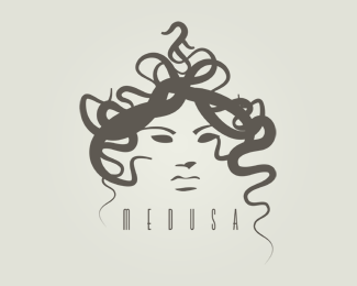 蛇蝎女人logo設(shè)計欣賞,該標(biāo)志的女人頭發(fā)都是由蛇組成。