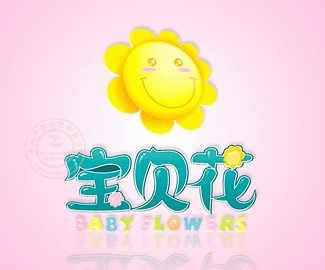 把名稱中的花創(chuàng)意變形為一朵帶有微笑的向日葵造型,具有很強(qiáng)烈的親和度,易于接近消費(fèi)群體。小型花朵嵌入字體之中,代表著希望、新生力量。字體設(shè)計(jì)亮麗、柔和,符合寶貝花的主題