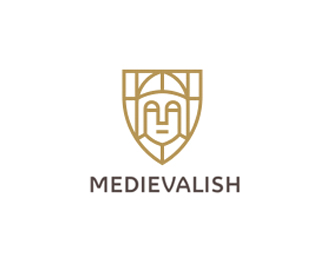 盾牌元素標(biāo)志設(shè)計采用了中世紀(jì)的表現(xiàn)手法,人物描繪以線條構(gòu)成,粗細均等的線條將人物和盾牌有效結(jié)合,標(biāo)志整體簡潔對稱。
