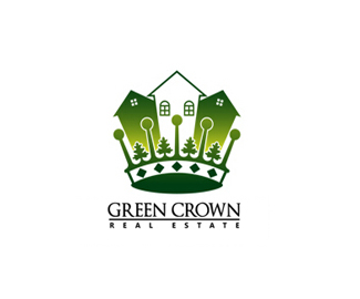 房地產(chǎn)項(xiàng)目標(biāo)志使用皇冠和房子的造型,整體闡述綠色皇冠的含義,標(biāo)志整體繁雜緊湊。
