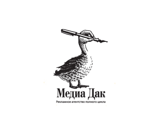 廣告公司名為媒體鴨,商標除了呼應公司的名稱,更以極度夸張大膽的想象力征服視覺受眾,手拿畫筆體現(xiàn)了廣告公司的美化含義,類似古怪離奇的設計還有人頭馬,美人魚等怪異組合。