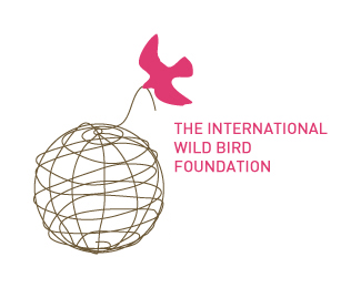 國際野生鳥類基地標志設計的第二套設計方案,使用鳥叼著抽象的線條勾勒出地球的形狀,以粉紅色作為主識別色。