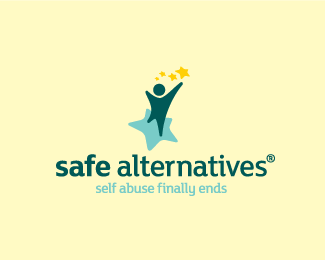 safe alternatives安全替代品標(biāo)志設(shè)計欣賞,使用人形和星形構(gòu)成該標(biāo)志的主識別圖形,整體以綠色、藍色、黃色為主色調(diào)。