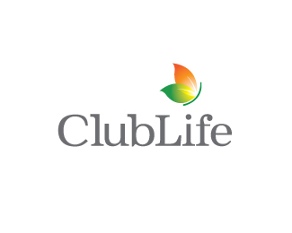 Clublife生活俱樂部標(biāo)志設(shè)計(jì)欣賞,綠色和橙色的兩片葉子組合成蝴蝶的造型,整體感很好的標(biāo)志設(shè)計(jì)。