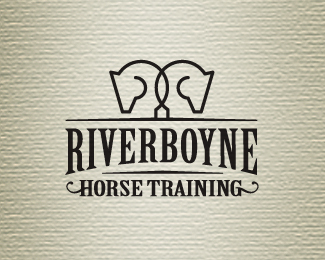 Riverboyne訓(xùn)馬場(chǎng)標(biāo)志設(shè)計(jì)欣賞,使用線條對(duì)稱的方式勾勒出該品牌的主創(chuàng)意圖形,整體以黑色為主色調(diào)。