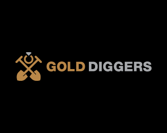 Gold Diggers淘金標志設計,使用鏟子作為該標志的主識別圖形。以金色作為主識別色。
