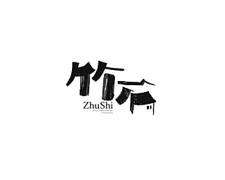 竹石書法字體設(shè)計(jì),應(yīng)用毛筆的筆觸呈現(xiàn)“竹”、“石”、“房”的意境。