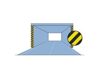 立面標(biāo)記為黃黑相間的傾斜線條,傾角為45度,線寬及其間隔均為15cm,設(shè)置時(shí)應(yīng)將向下傾斜的一邊朝向車行道。