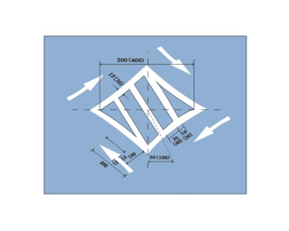 中心圈標(biāo)線設(shè)置在交叉路口中心的斜紋填充的白色圓形或菱形區(qū)域,用以區(qū)分車輛大、小轉(zhuǎn)彎,及交叉路口車輛左右轉(zhuǎn)彎的指示,車輛不得壓線行駛。