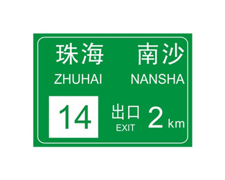 用于預告前方出口,設置在距離高速公路或城市快速路減速車道的漸變段起點2 km處。出口預告標志應同時附著出口編號標志。